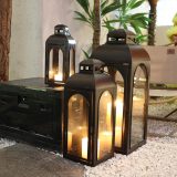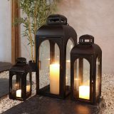Illuminate your porch or indoor spaces with this beautiful set of three outdoor lanterns. Each lantern features a 26″ metal frame with intricate detailing, adding a touch of elegance to your surroundings. The glass panels allow the candlelight to shine through, creating a warm and inviting ambiance.